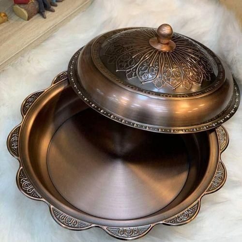 صينية كبسة مزخرفة من النحاس لتقديم الطعام بأناقة