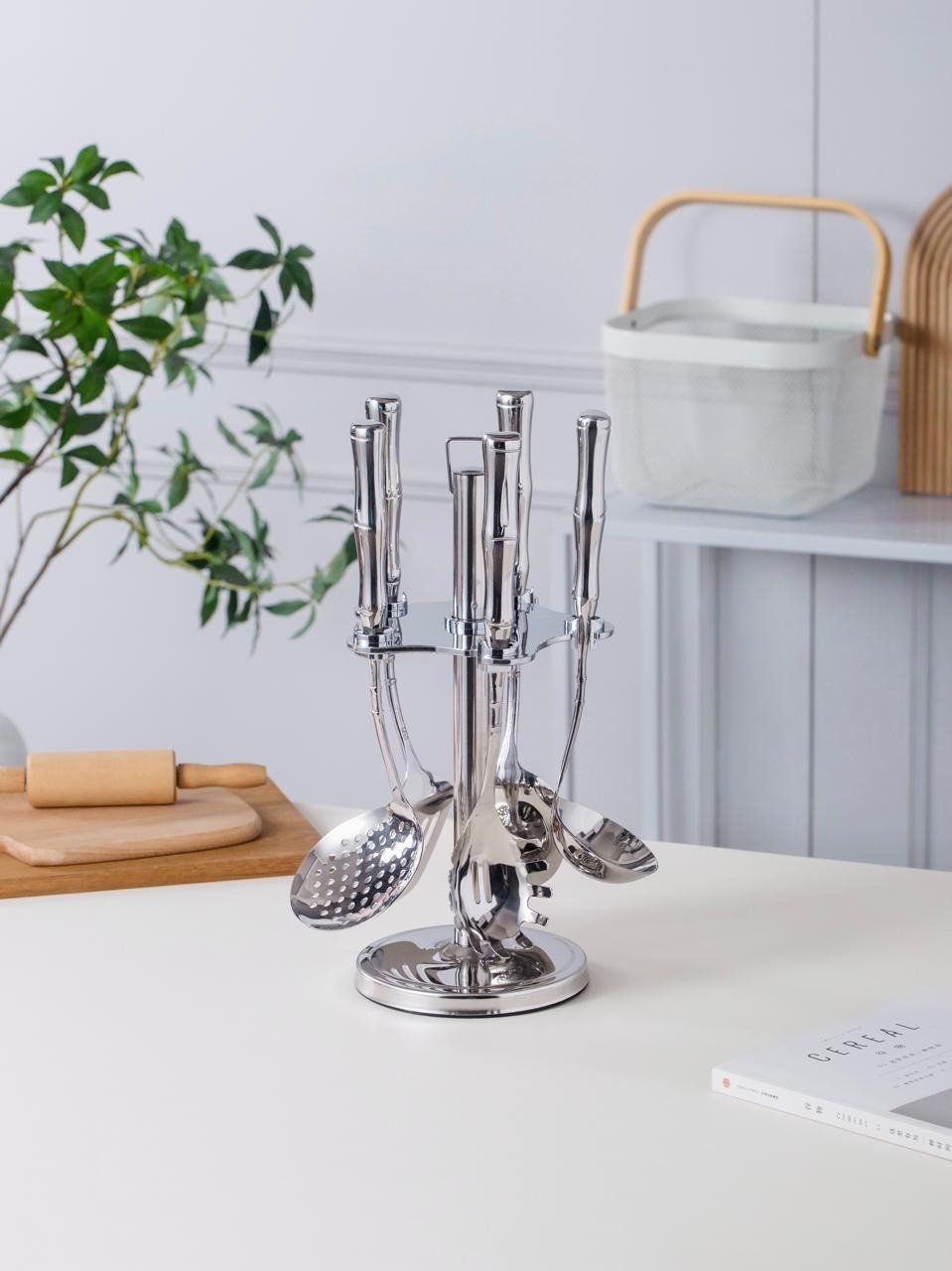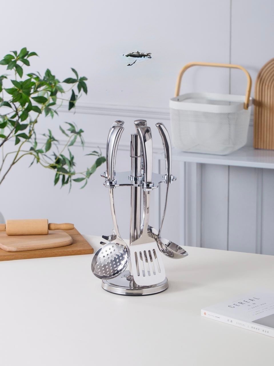 طقم أدوات مطبخ 7 قطع – استانلس ستيل دوار فاخر بنقشة مميزة