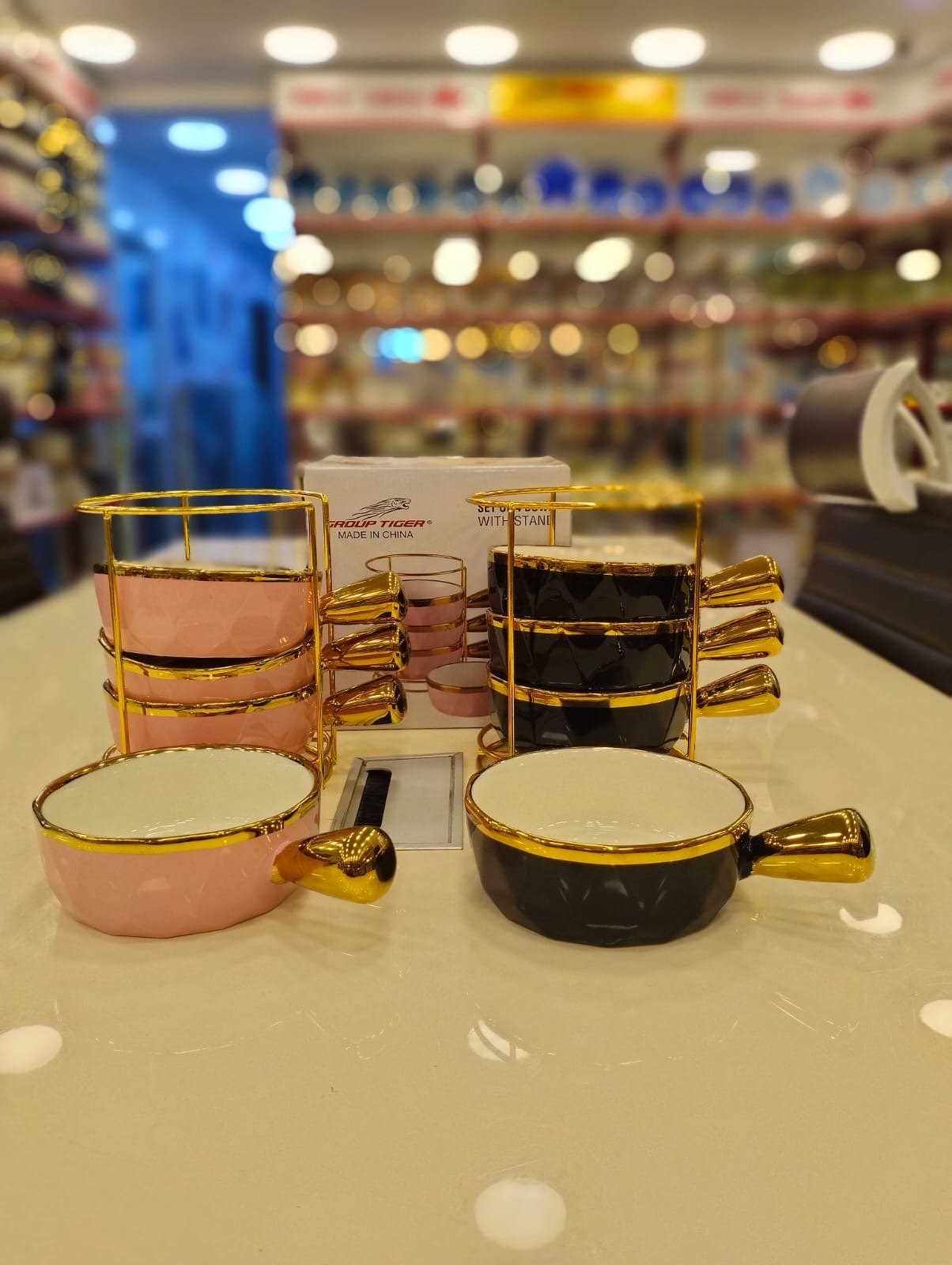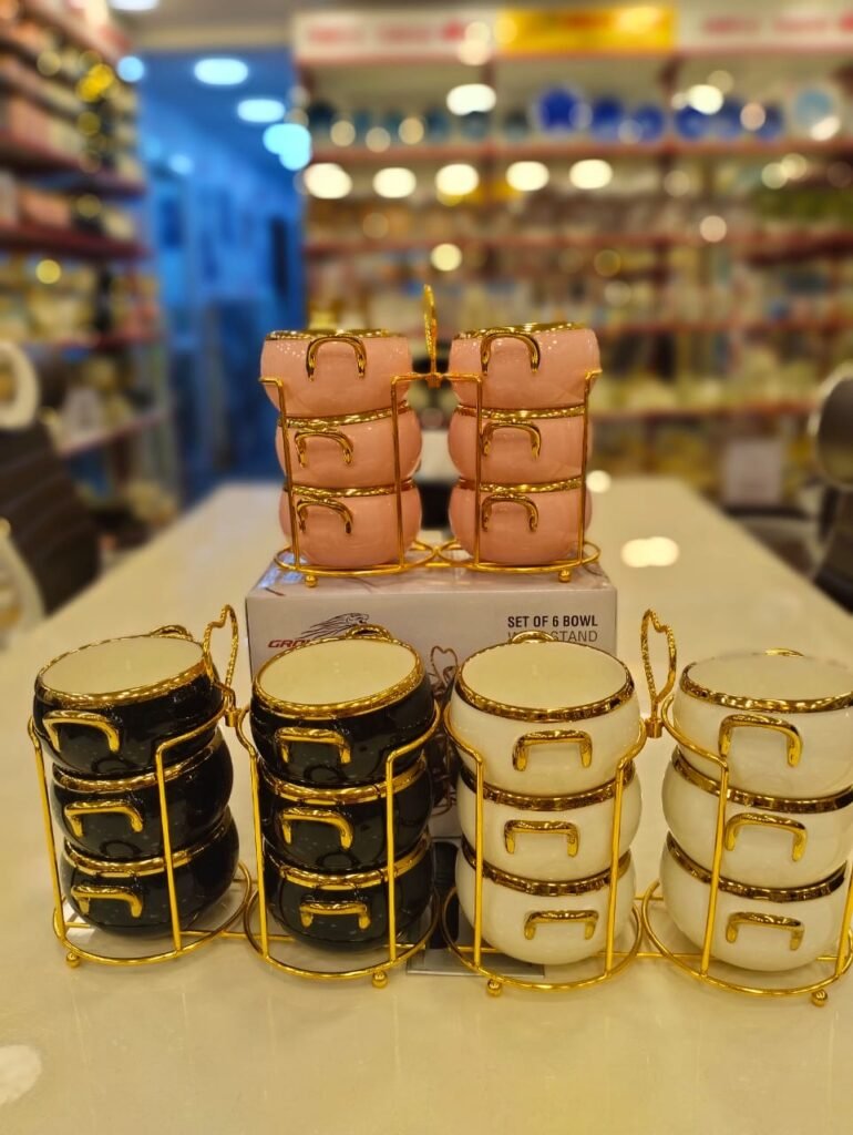 طقم بولات شوربة بحامل ذهبي – ستايل مودرن وشيك جدًا.