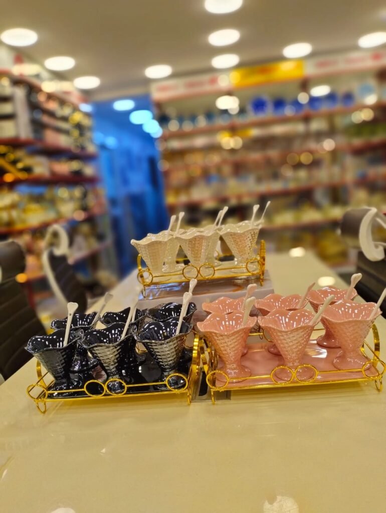 طقم جيلي بورسلين بحامل ذهبي راقي ✨