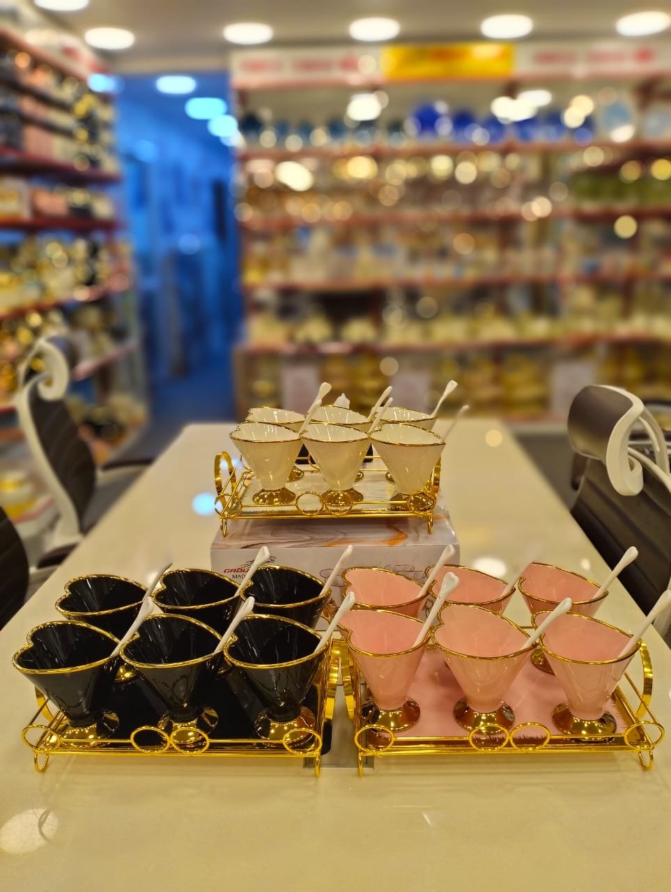تصميم عصري أنيق يناسب الضيافة الراقية وتقديم الجيلي، المهلبية، الكريم كراميل والحلويات المختلفة.