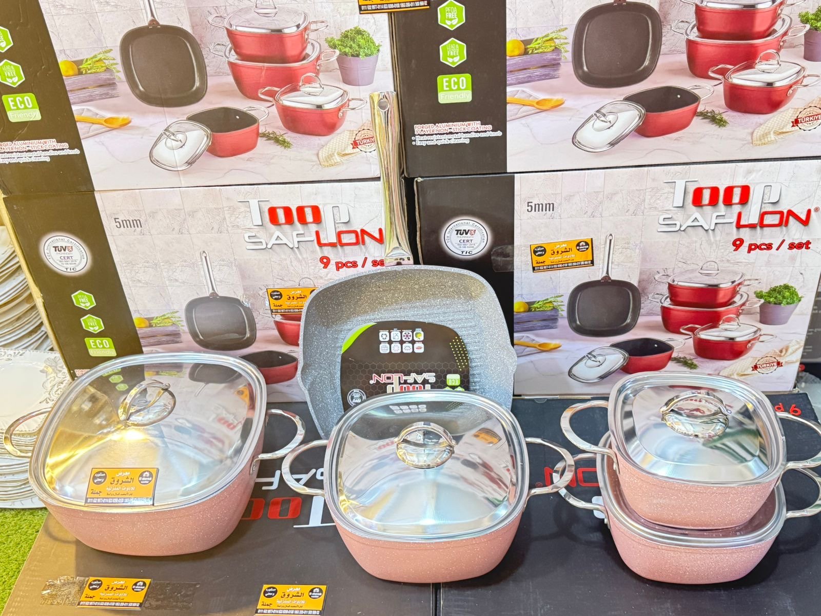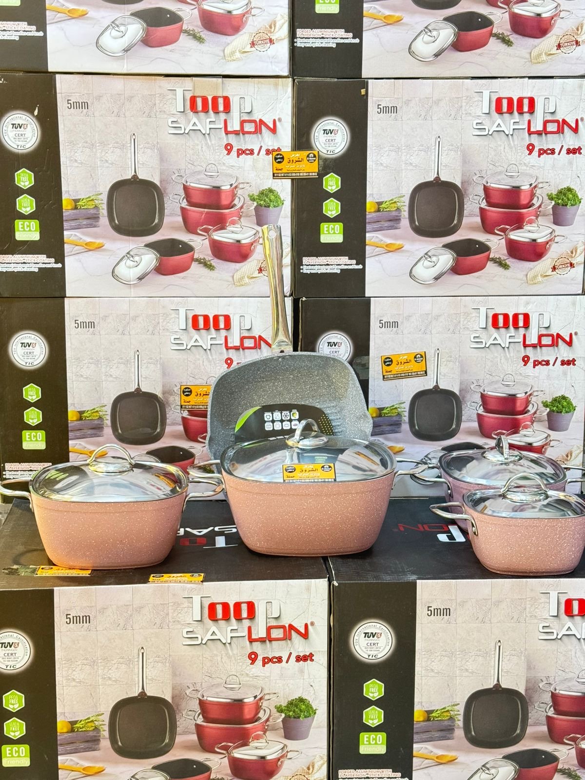 طقم حلل Toop Saflon مكون من 9 قطعه