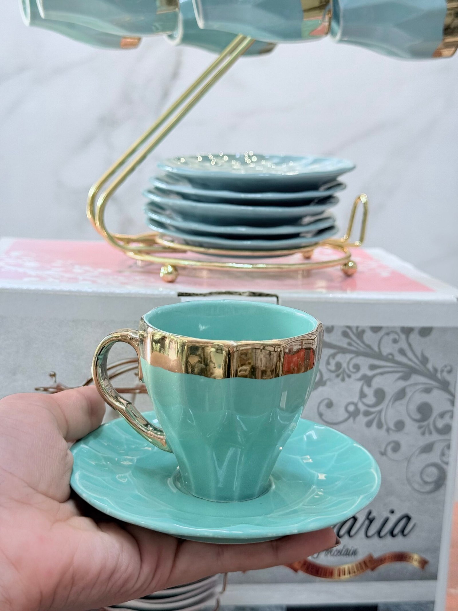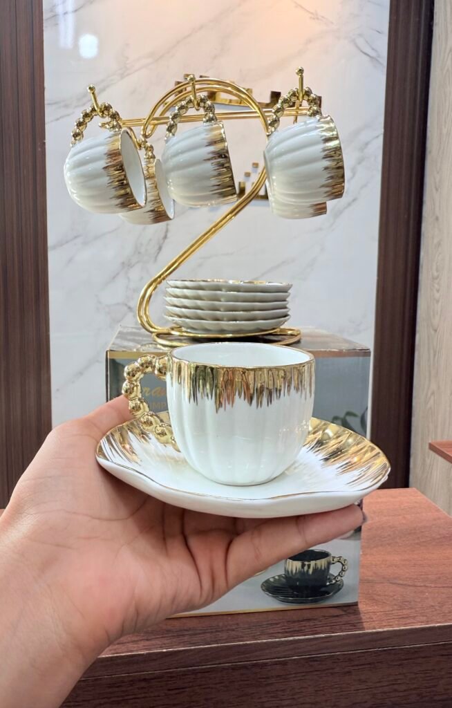 ✨ طقم فناجين راقي بالمعدن الدهبي الفاخر ✨