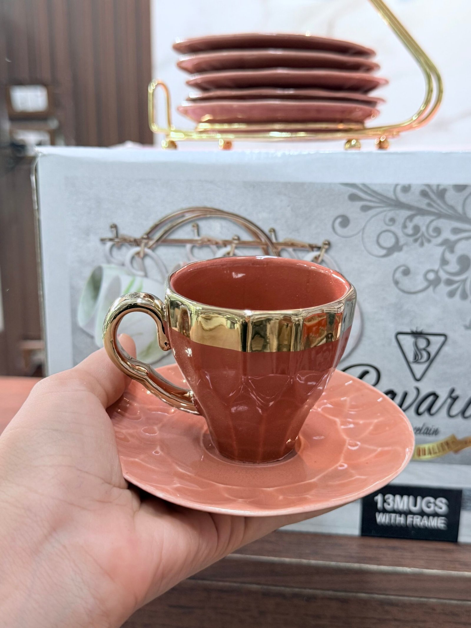 طقم فناجين راقي بالمعدن الدهبي الفاخر
