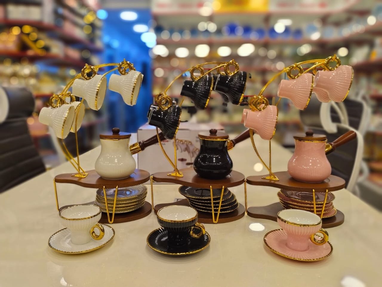 طقم فنجان قهوة بالكنكة بورسلين ✨