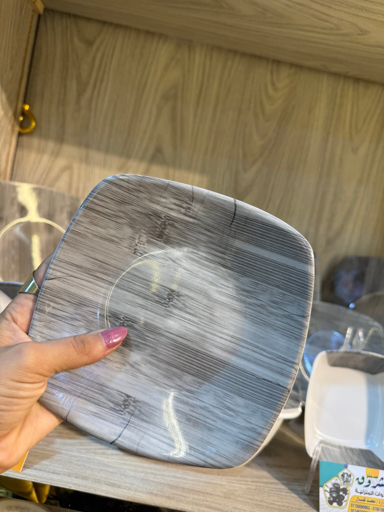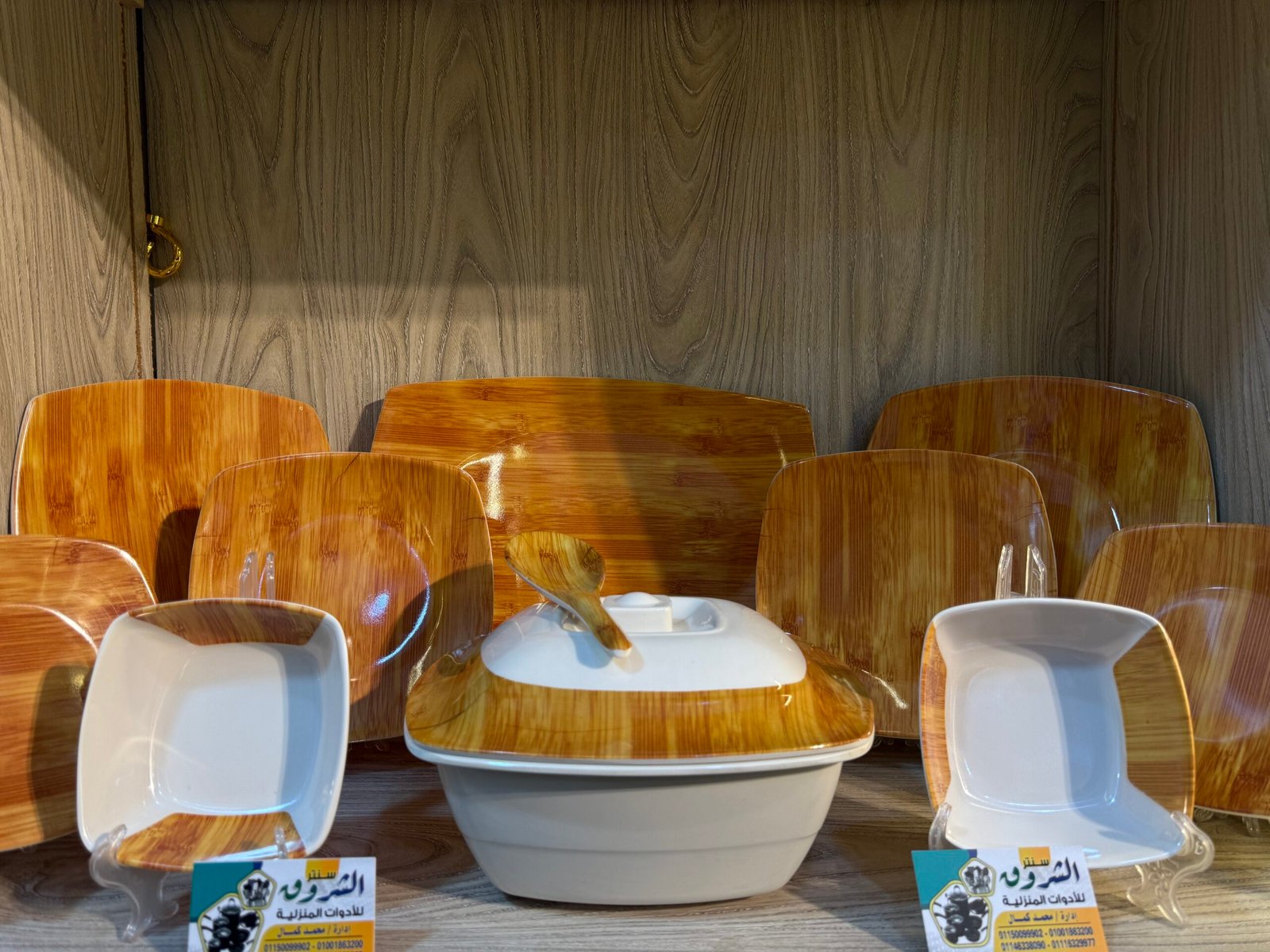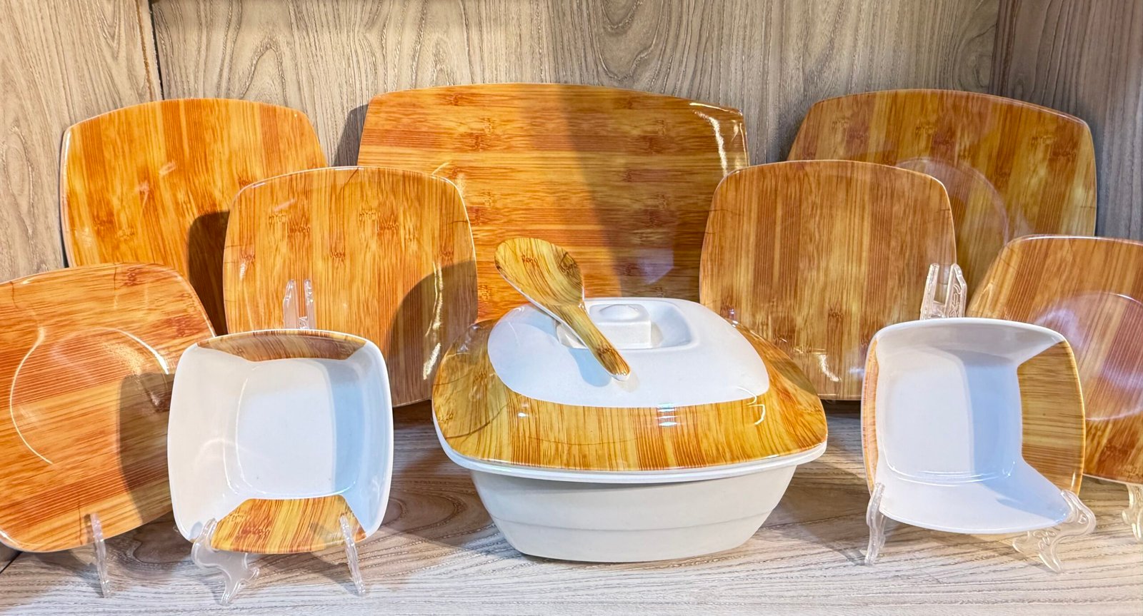 طقم ملامين ٣٨ قطعة – شكل خشبي مودرن مربع