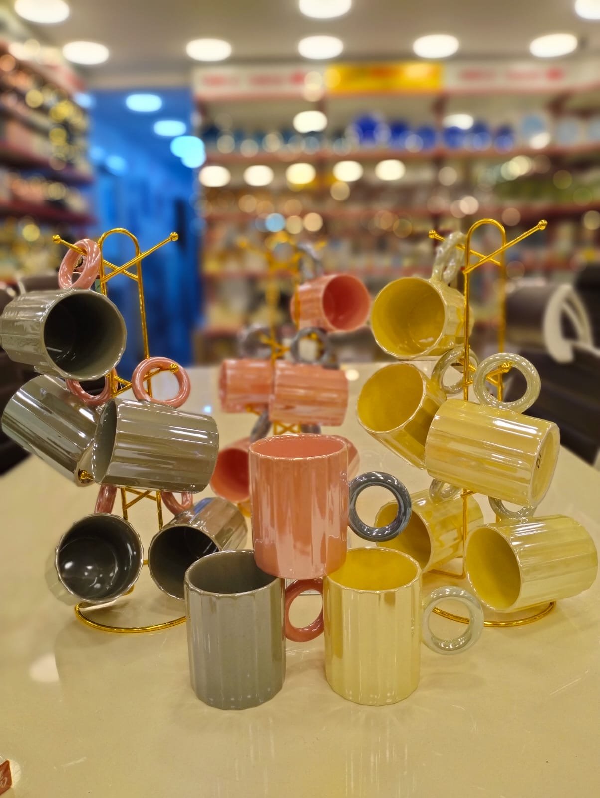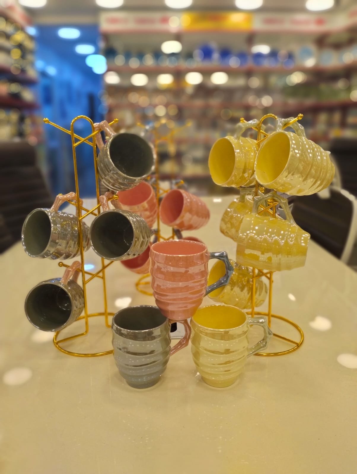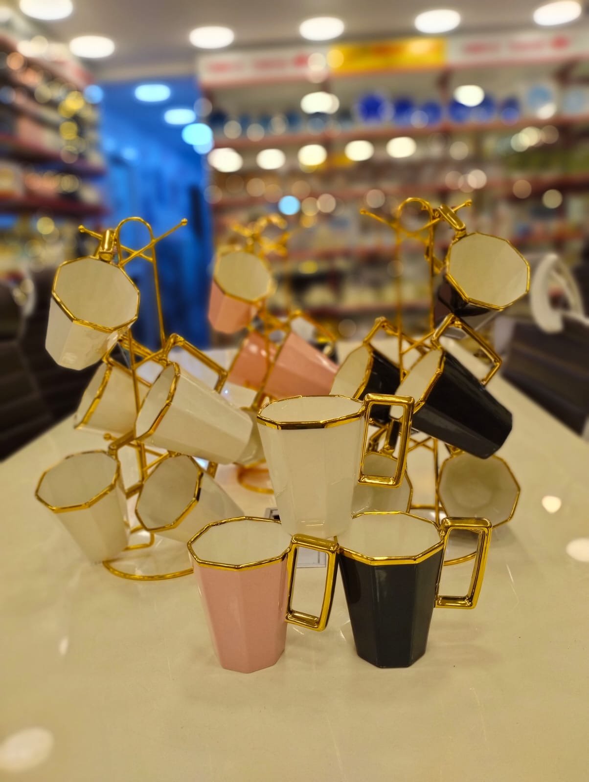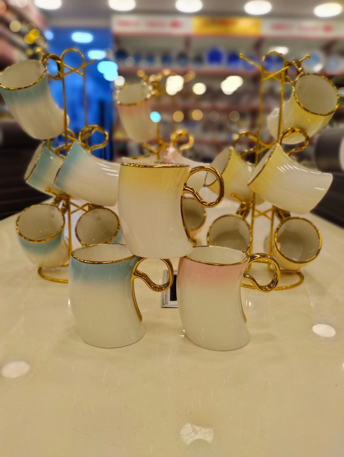✨ طقم مجات بورسلين فاخر بالحامل الذهبي ✨
