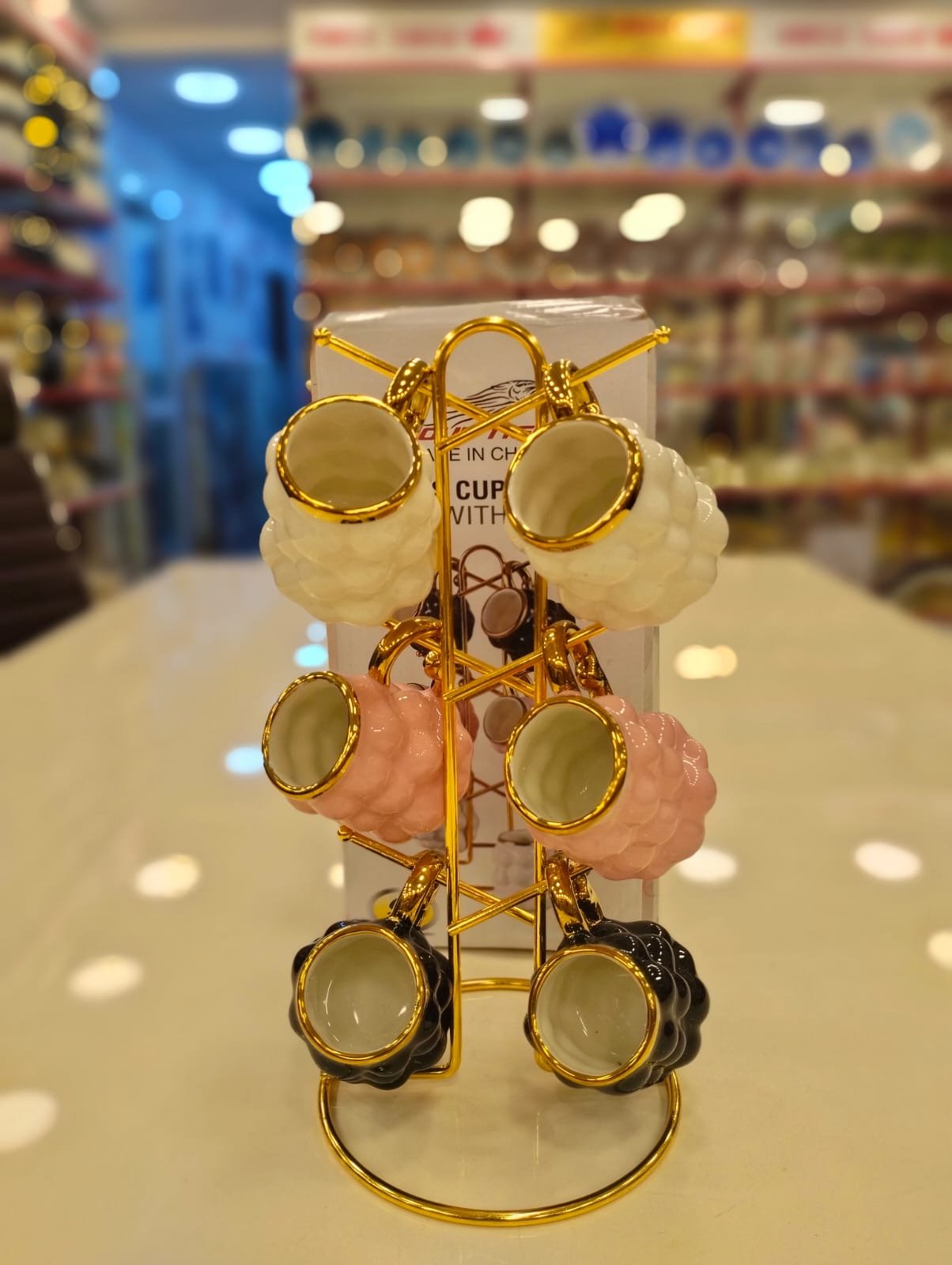 ✨ طقم مجات بورسلين فاخر بالحامل الذهبي